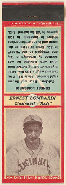 - Title: Ernest Lombardi, Cincinnati Reds, from the Baseball Players Match Cover design series (U3) issued by Diamond Match Company