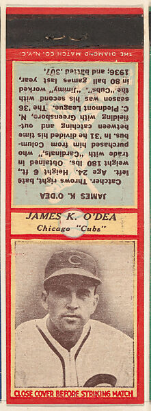 - Title:James K. O'Dea, Chicago Cubs, from the Baseball Players Match Cover design series (U3) issued by Diamond Match Company