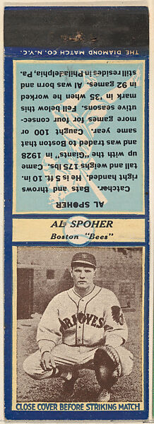 - Title: Al Spohrer, Boston Bees, from the Baseball Players Match Cover design series (U3) issued by Diamond Match Company