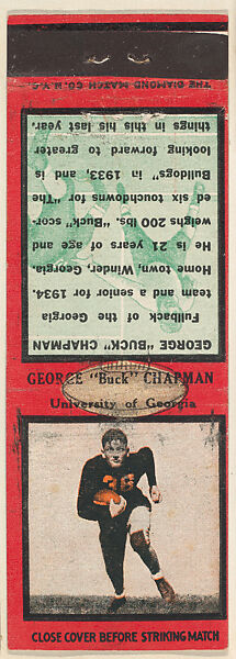- Title:George "Buck" Chapman, University of Georgia, from the Football Players Match Cover design series (U6) issued by Diamond Match Company