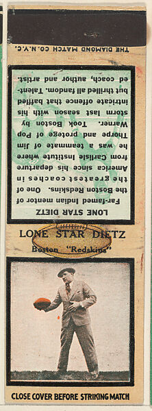 - Title:Lone Star Dietz, Boston Redskins, from the Football Players Match Cover design series (U6) issued by Diamond Match Company