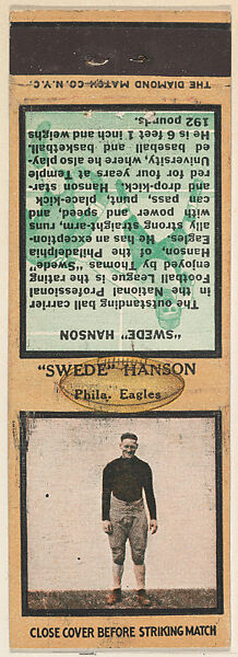- Title:"Swede" Hanson, Philadelphia Eagles, from the Football Players Match Cover design series (U6) issued by Diamond Match Company