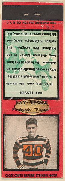 - Title: Ray Tesser, Pittsburgh Pirates, from the Football Players Match Cover design series (U6) issued by Diamond Match Company