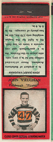 - Title: John Vaughn, Pittsburgh Pirates, from the Football Players Match Cover design series (U6) issued by Diamond Match Company