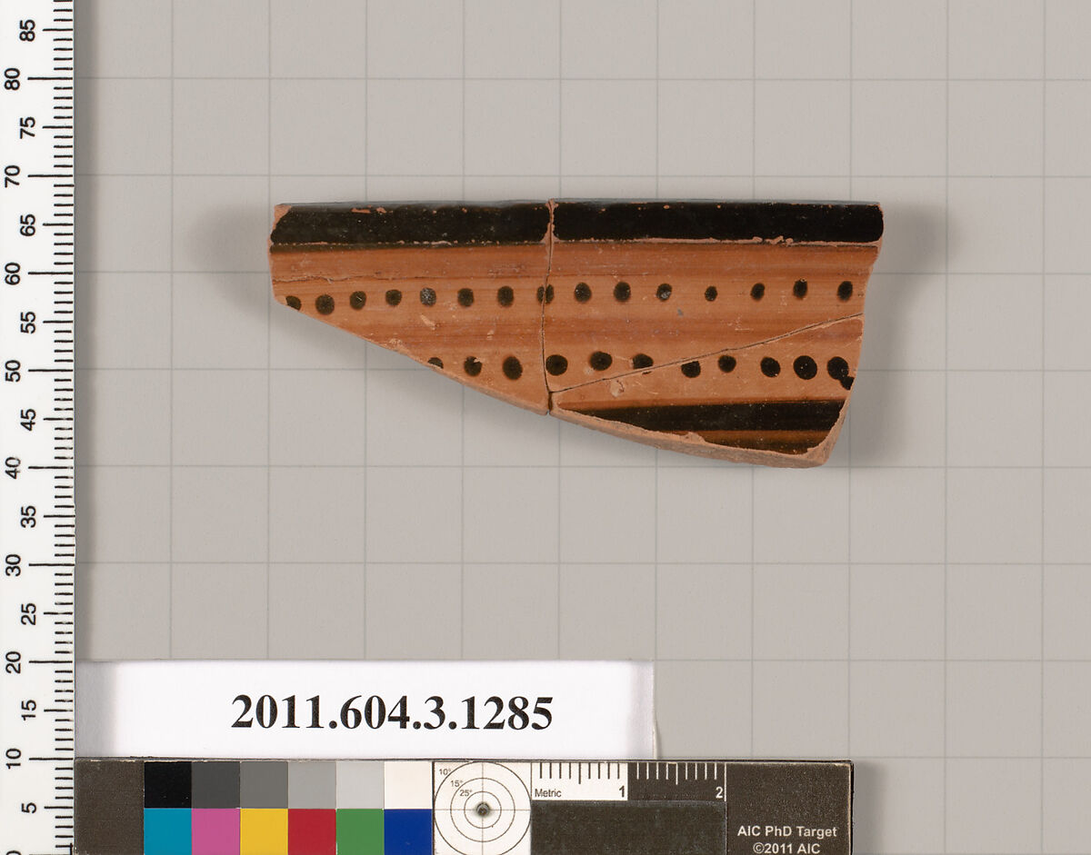 - Title: Terracotta rim fragment of a skyphos (deep drinking cup)