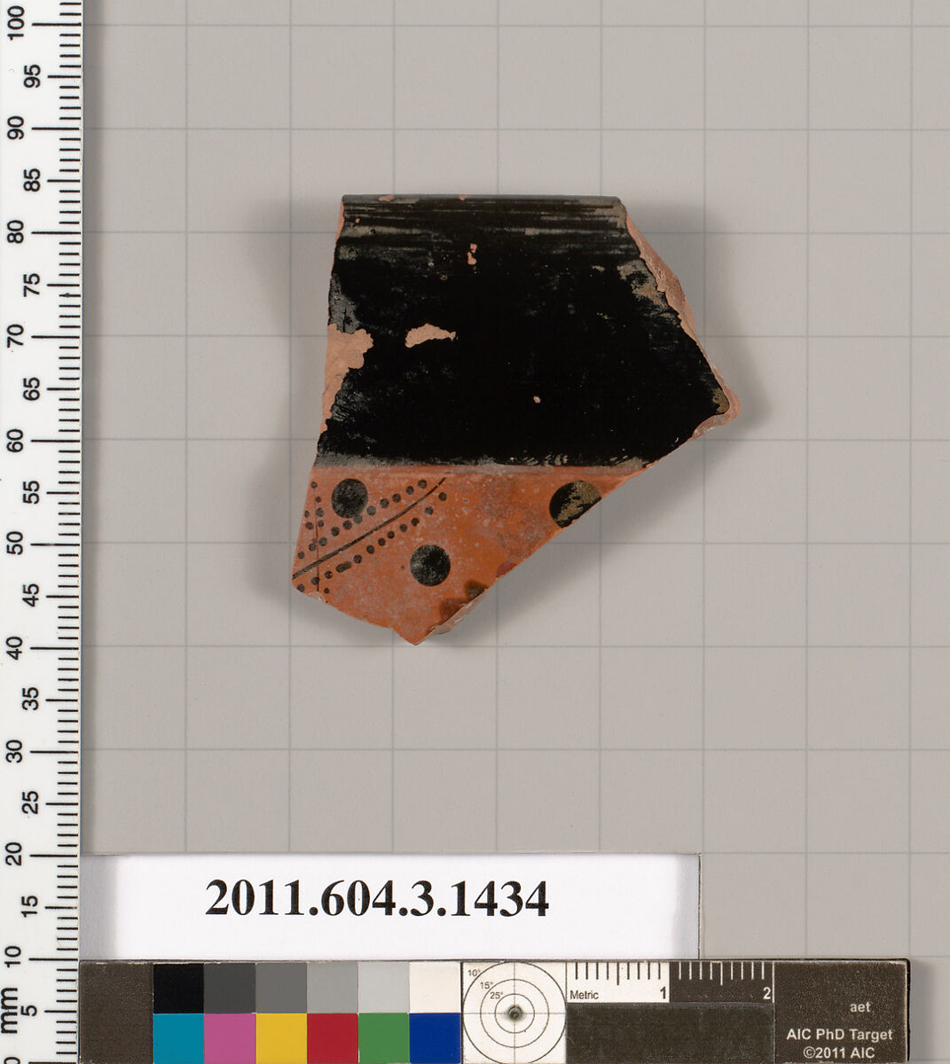 - Title:Terracotta rim fragment of a skyphos (deep drinking cup)