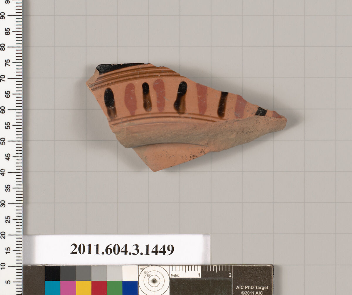- Title:Terracotta fragment of a skyphos (deep drinking cup)