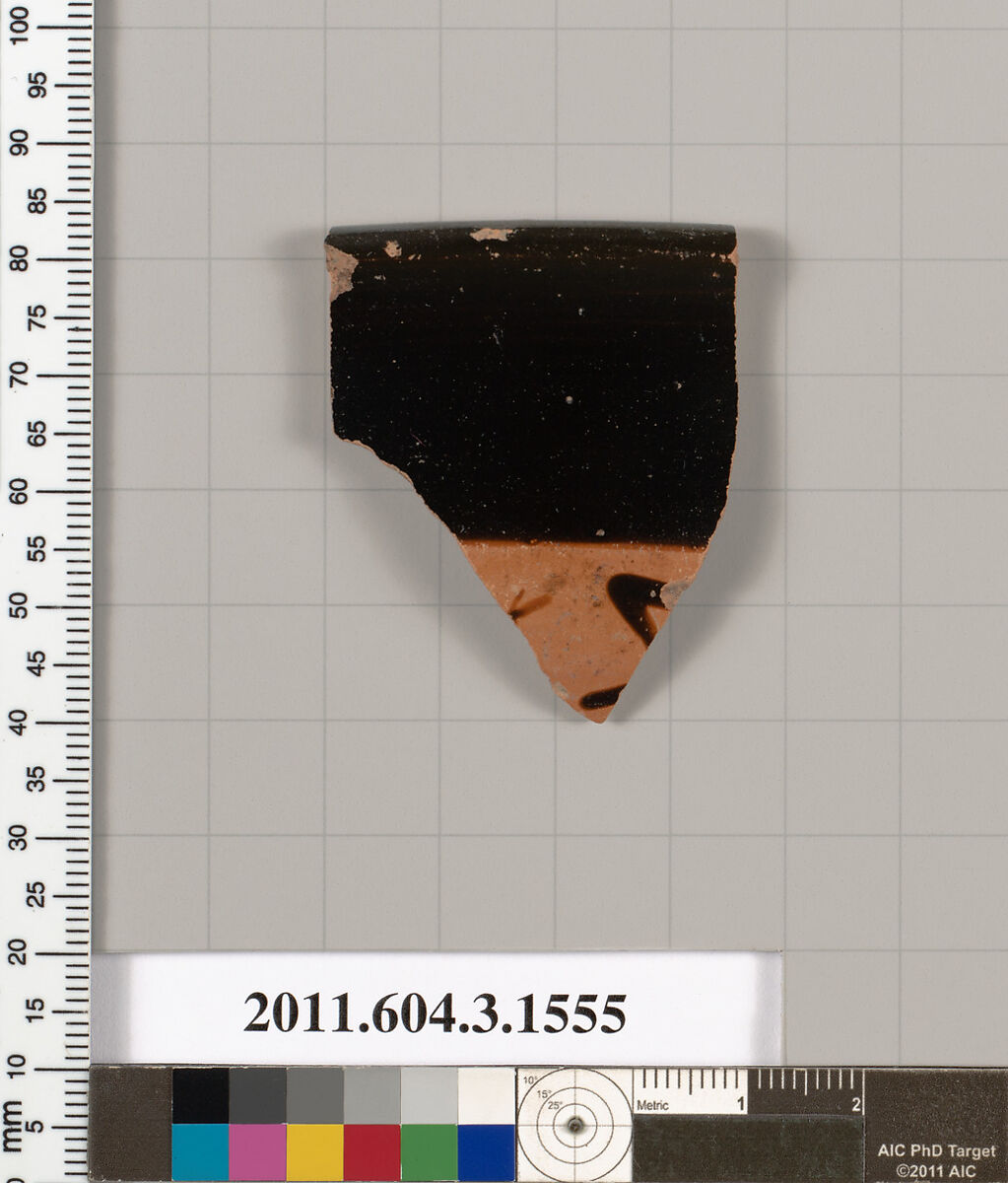 - Title: Terracotta rim fragment of a kylix: Band cup (drinking cup)