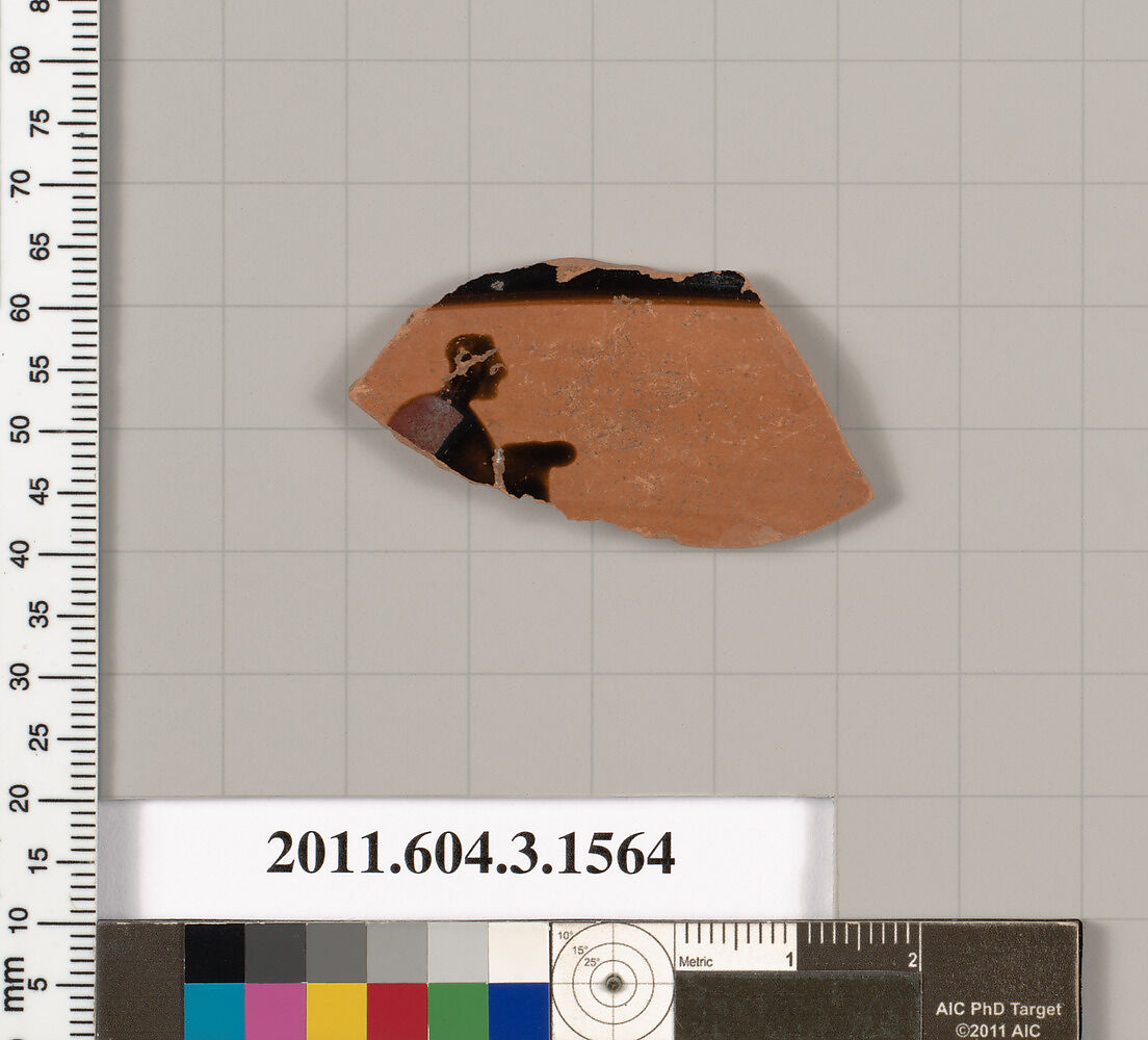 - Title:Terracotta fragment of a kylix: Band cup (drinking cup)