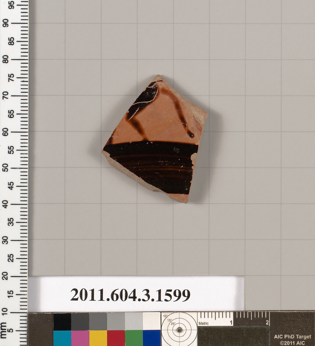- Title:Terracotta fragment of a kylix: Band cup (drinking cup)