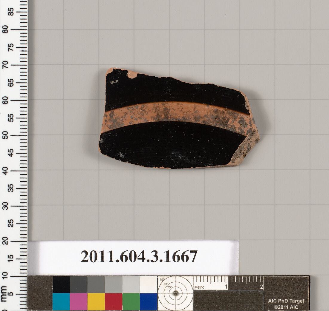 - Title:Terracotta fragment of a kylix: Band or lip cup (drinking cup)