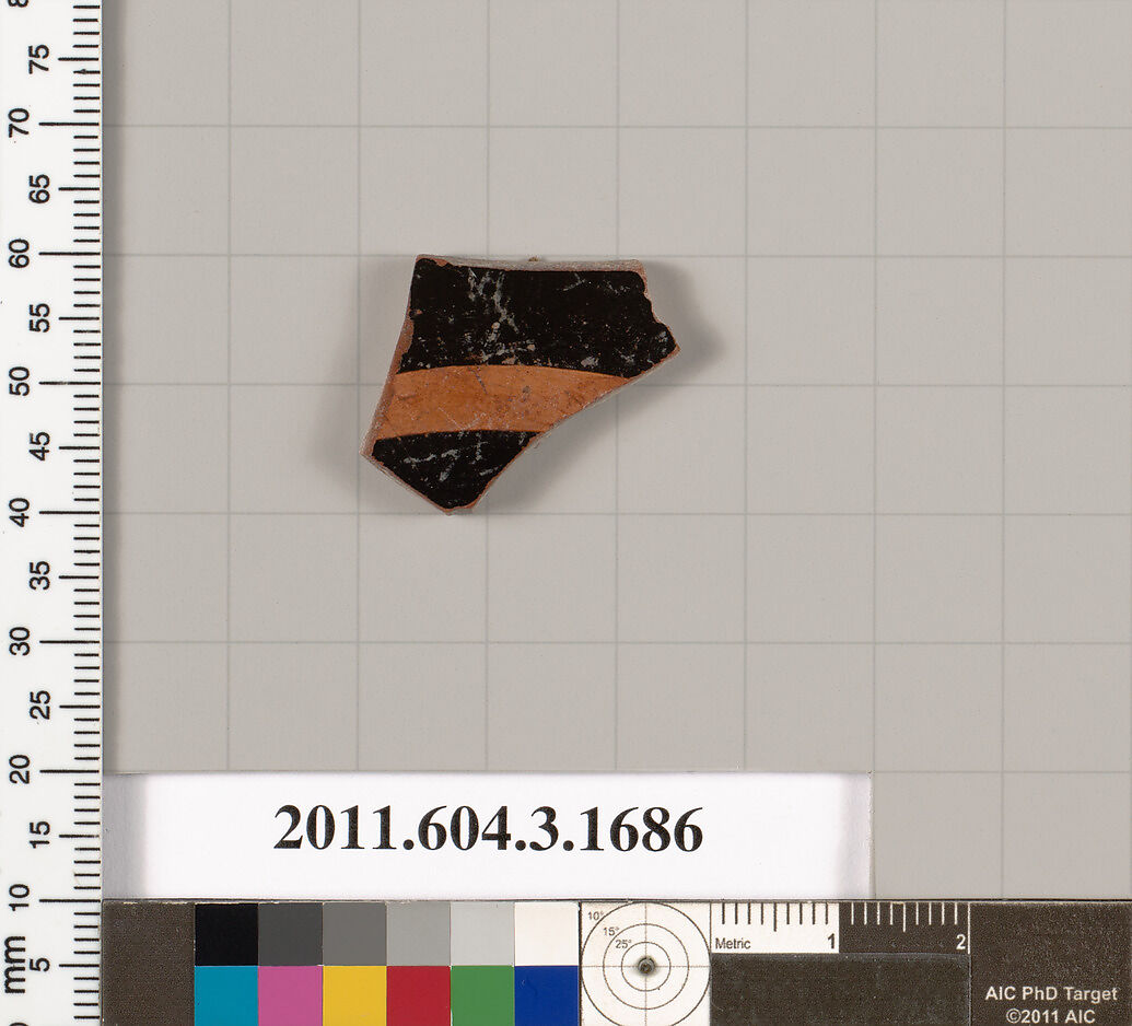 - Title:Terracotta fragment of a kylix: Band or lip cup (drinking cup)