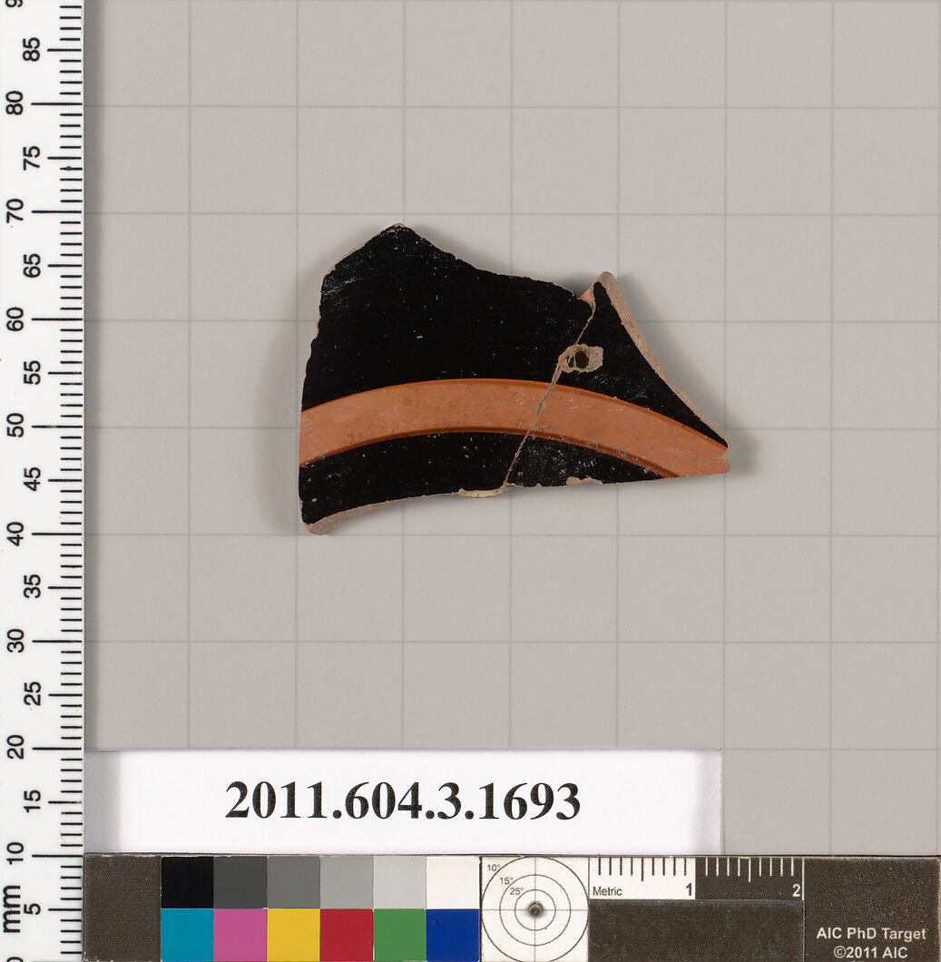 - Title:Terracotta fragment of a kylix: Band or lip cup (drinking cup)