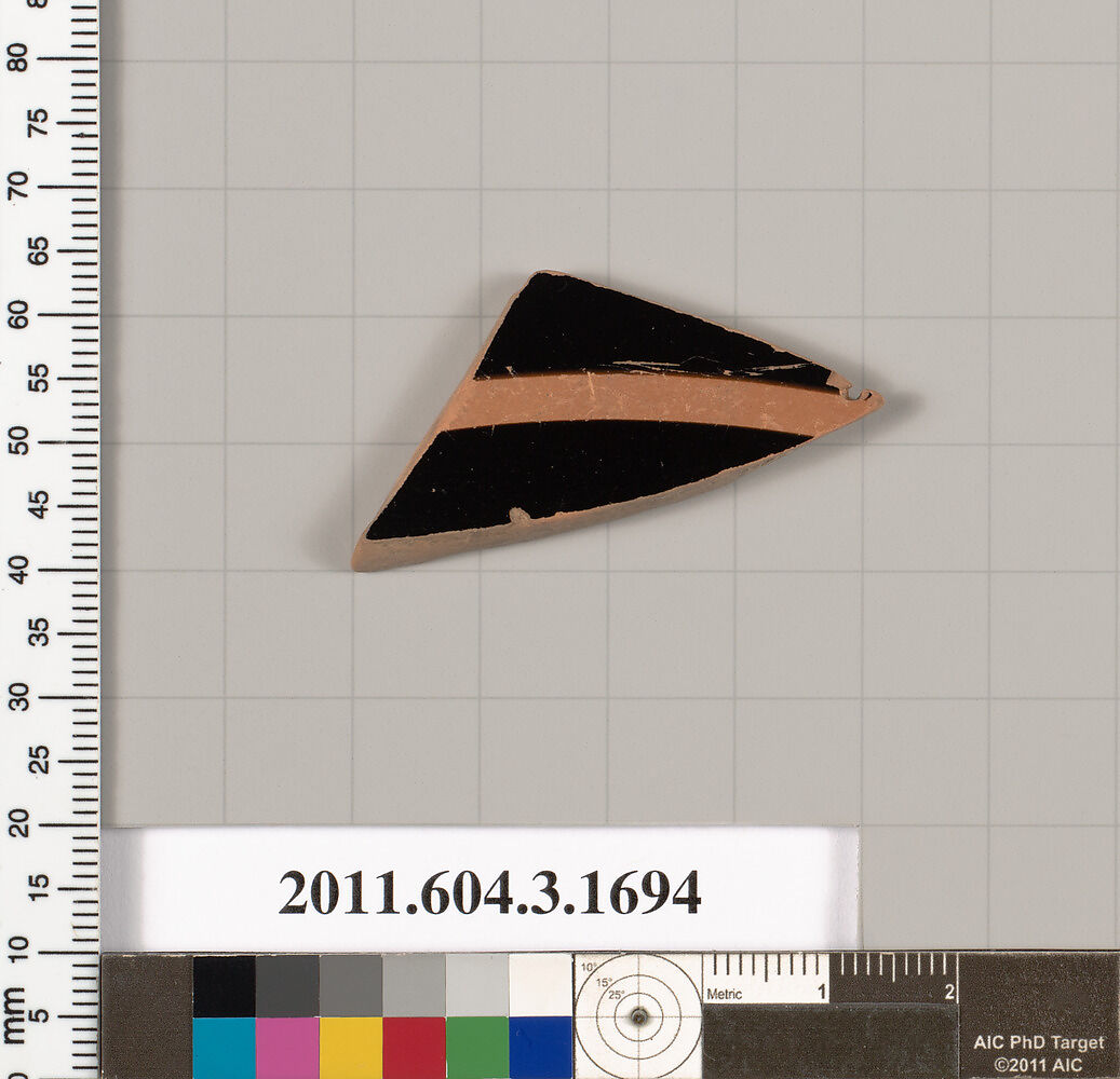 - Title: Terracotta fragment of a kylix: Band or lip cup (drinking cup)
