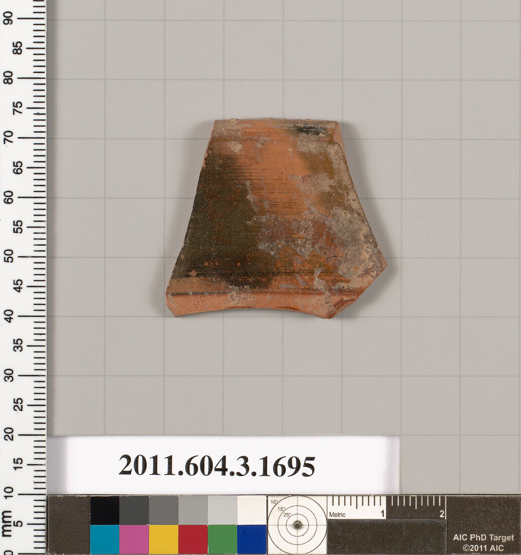 - Title:Terracotta rim fragment of a kylix: Band cup (drinking cup)