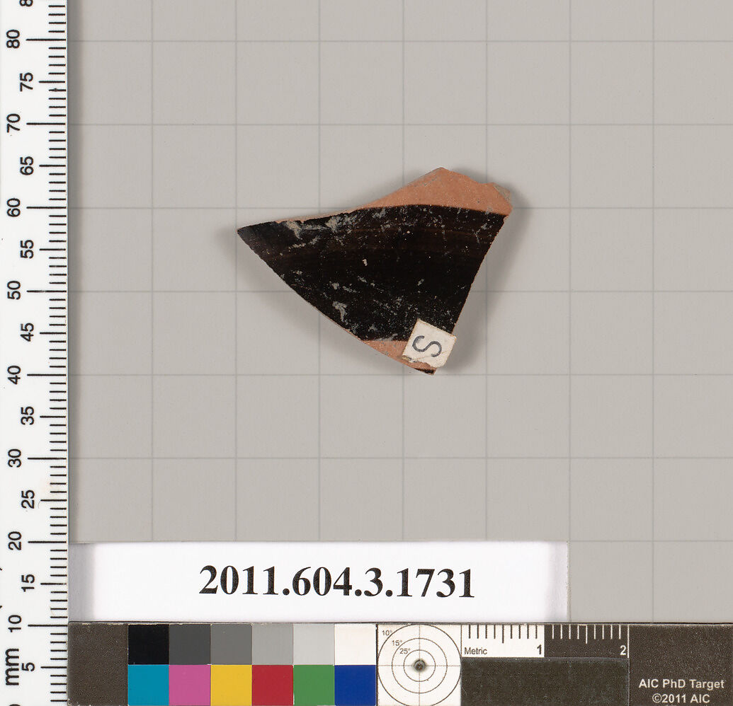 - Title:Terracotta fragment of a kylix: Band or lip cup (drinking cup)