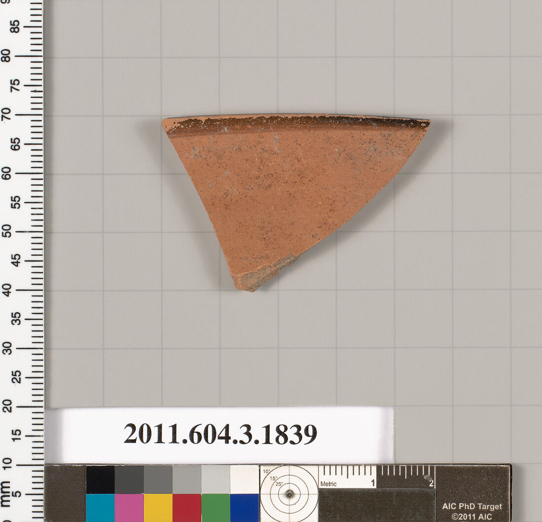 - Title: Terracotta fragment of a kylix: Lip cup (drinking cup)