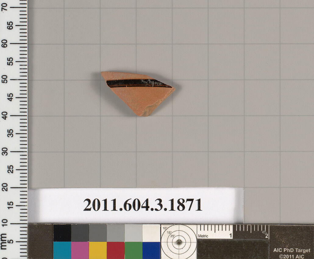 - Title:Terracotta fragment of a kylix: Band or lip cup (drinking cup)