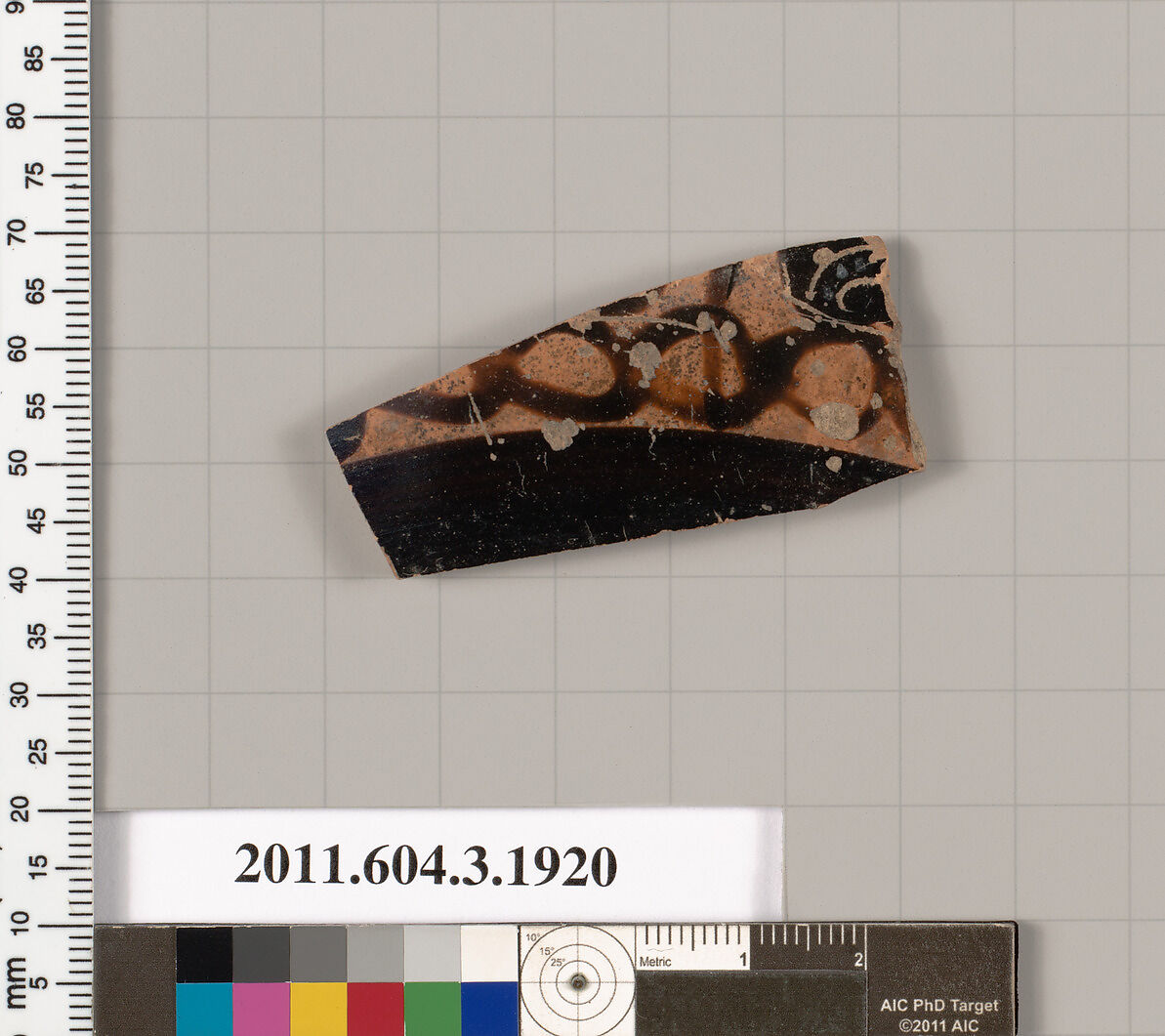 - Title:Terracotta fragment of a kylix (drinking cup) or a skyphos (deep drinking cup)?