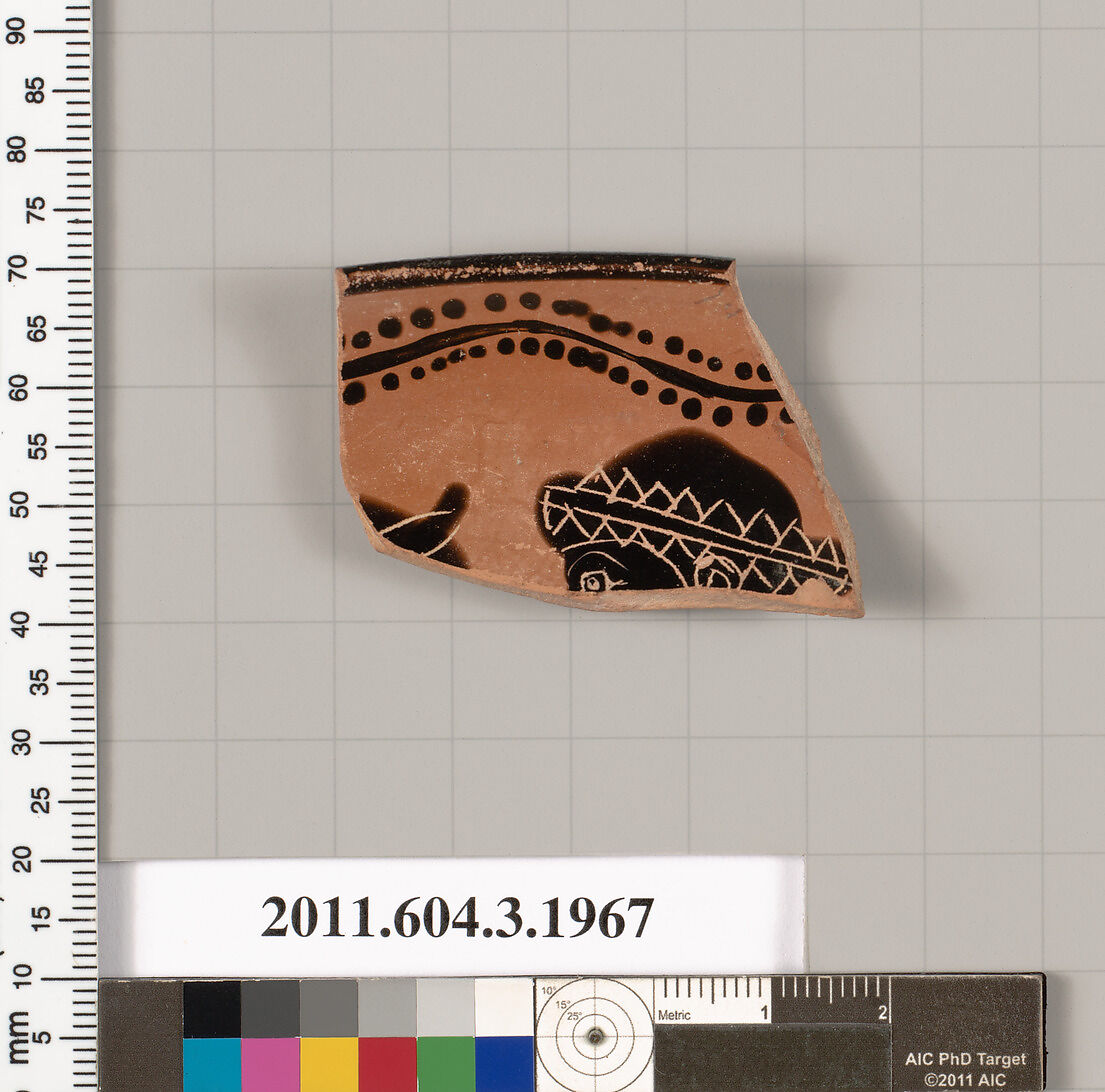 - Title:Terracotta fragment of a kylix (drinking cup)