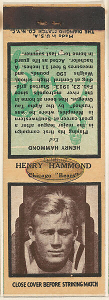 - Title: Henry Hammond, Chicago Bears, from the Football Players Match Cover design series (U7) issued by Diamond Match Company