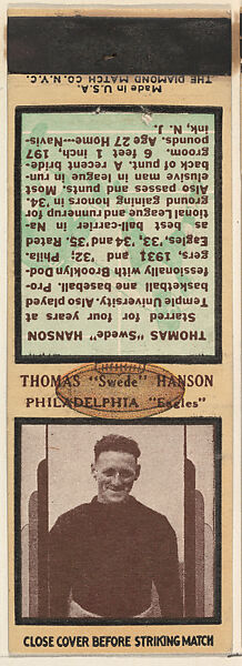 - Title: Thomas "Swede" Hanson, Philadelphia Eagles, from the Football Players Match Cover design series (U7) issued by Diamond Match Company