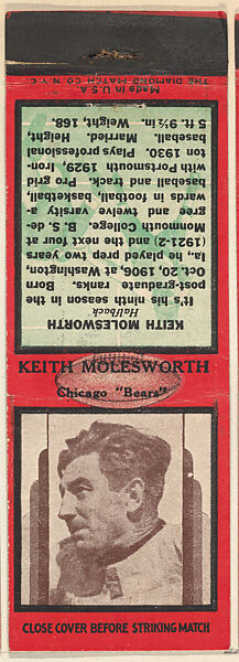 - Title: Keith Molesworth, Chicago Bears, from the Football Players Match Cover design series (U7) issued by Diamond Match Company
