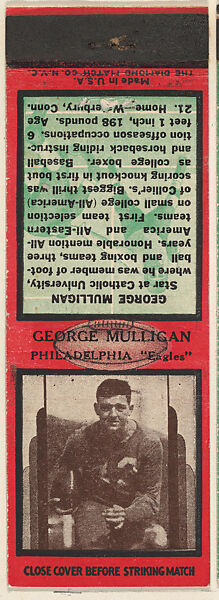 - Title: George Mulligan, Philadelphia Eagles, from the Football Players Match Cover design series (U7) issued by Diamond Match Company