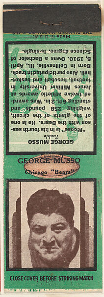 - Title: George Musso, Chicago Bears, from the Football Players Match Cover design series (U7) issued by Diamond Match Company