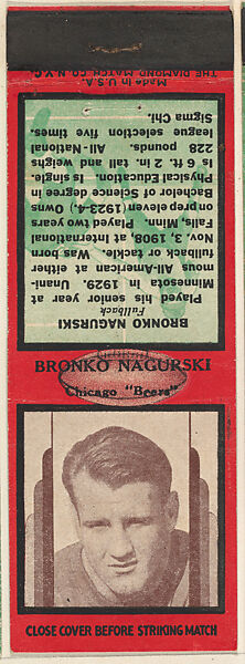 - Title:Bronko Nagurski, Chicago Bears, from the Football Players Match Cover design series (U7) issued by Diamond Match Company