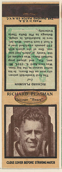 - Title: Richard Plasman, Chicago Bears, from the Football Players Match Cover design series (U7) issued by Diamond Match Company