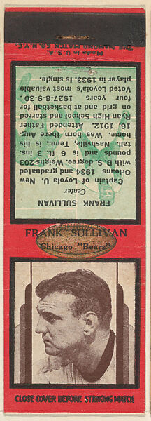 Frank Sullivan, Chicago Bears, from the Football Players Match Cover design series (U7) issued by Diamond Match Company