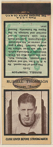 - Title: Russell Thompson, Chicago Bears, from the Football Players Match Cover design series (U7) issued by Diamond Match Company