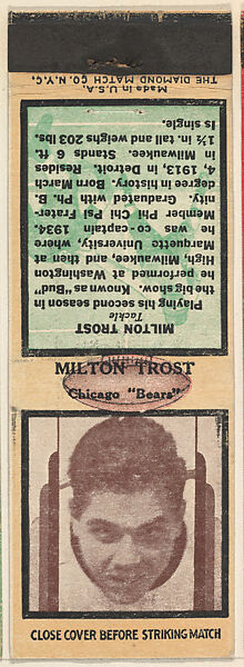 - Title: Milton Trost, Chicago Bears, from the Football Players Match Cover design series (U7) issued by Diamond Match Company