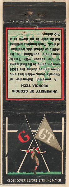 - Title:University of Georgia - Georgia Tech from Traditional College Rivals (Football) Match Cover design series (U8) issued by Diamond Match Company