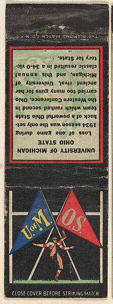 - Title: University of Michigan - Ohio State from Traditional College Rivals (Football) Match Cover design series (U8) issued by Diamond Match Company