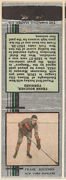 - Title: Frank Boucher, New York Rangers, from Silver Hockey Players Match Cover design series (U9) issued by Diamond Match Company
