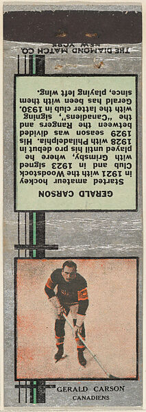 - Title: Gerald Carson, Canadiens, from Silver Hockey Players Match Cover design series (U9) issued by Diamond Match Company