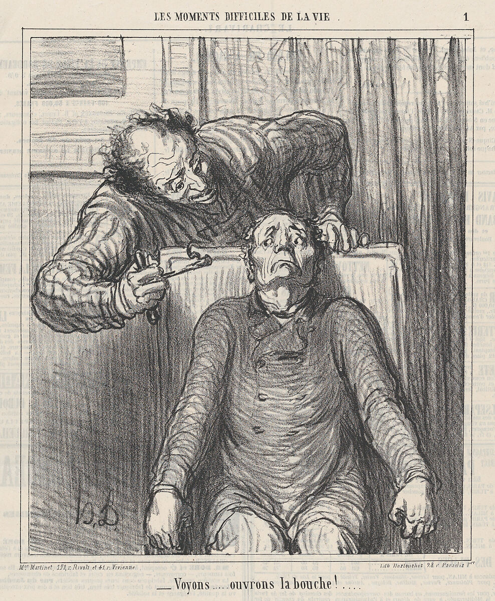 Come on... open your mouth!..., from 'The difficult moments of life,' published in Le Charivari, March 12, 1864