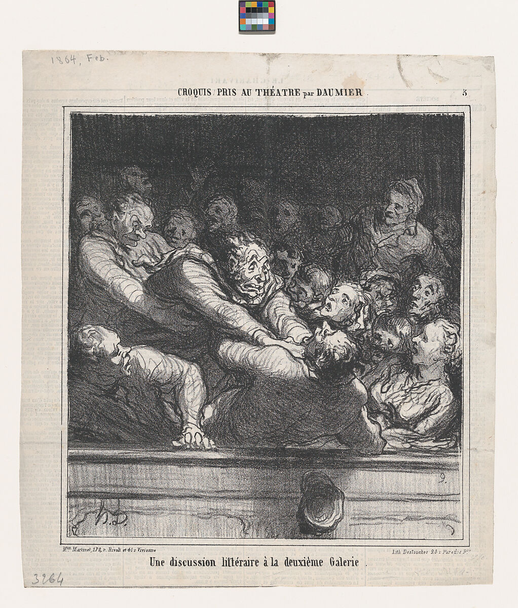 - Title: A literary argument on the second tier, from 'Theater sketches,' published in Le Charivari, February 27, 1864