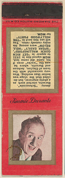 - Title: Jimmie Durante from Movie Stars Match Cover design series (U20) issued by Diamond Match Company