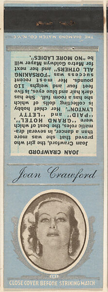 - Title:Joan Crawford from Movie Stars Match Cover design series (U21) issued by Diamond Match Company