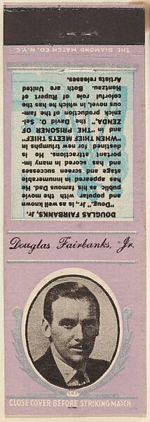 - Title: Douglas Fairbanks Jr. from Movie Stars Match Cover design series (U21) issued by Diamond Match Company