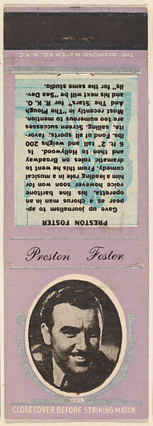 - Title:Preston Foster from Movie Stars Match Cover design series (U21) issued by Diamond Match Company