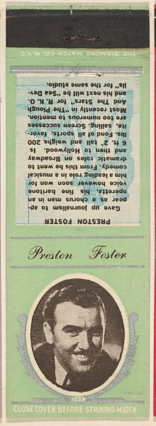 - Title: Preston Foster from Movie Stars Match Cover design series (U21) issued by Diamond Match Company