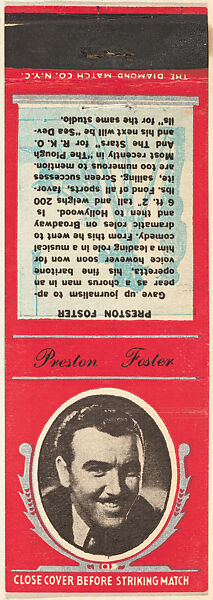 - Title: Preston Foster from Movie Stars Match Cover design series (U21) issued by Diamond Match Company