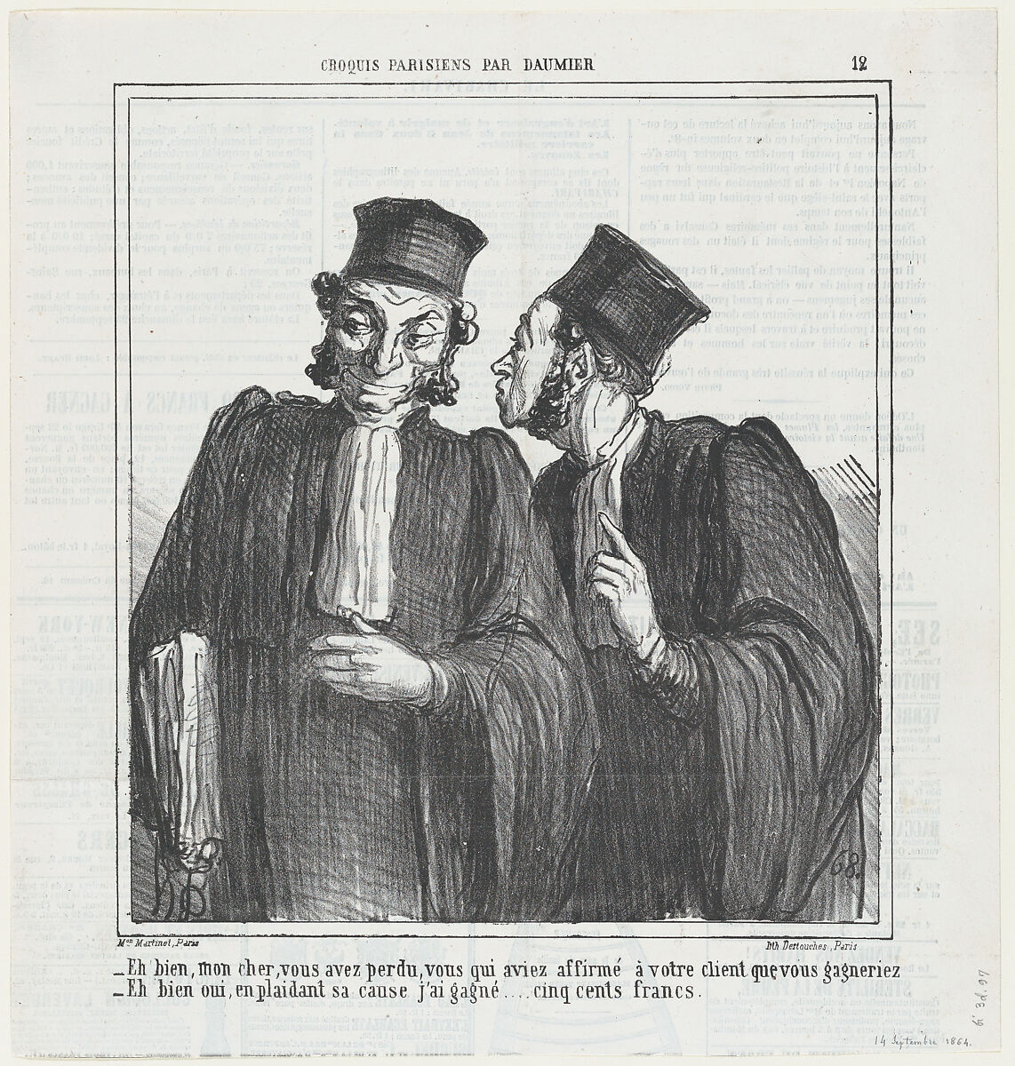 - Title: Well my friend, it seems you have lost..., from 'Parisian sketches,' published in Le Charivari, September 14, 1864