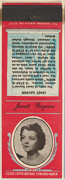 - Title:Janet Gaynor from Movie Stars Match Cover design series (U21) issued by Diamond Match Company