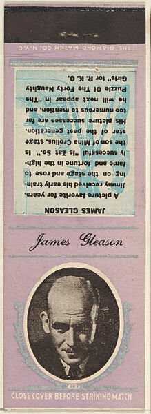 - Title:James Gleason from Movie Stars Match Cover design series (U21) issued by Diamond Match Company