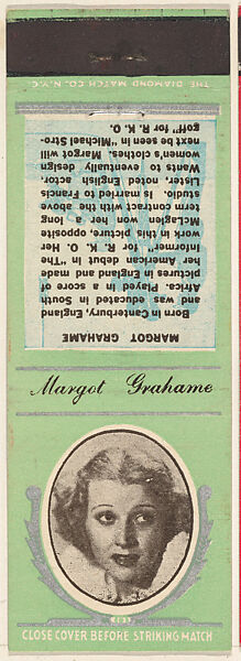 - Title:Margot Grahame from Movie Stars Match Cover design series (U21) issued by Diamond Match Company